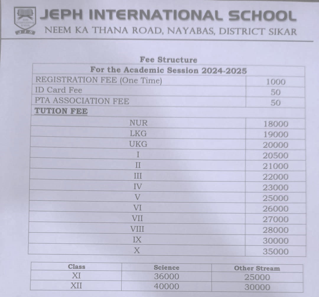 1. | NAME OF THE SCHOOL | JEPH INTERNATIONAL SCHOOL NEEM KA THANA SIKAR |